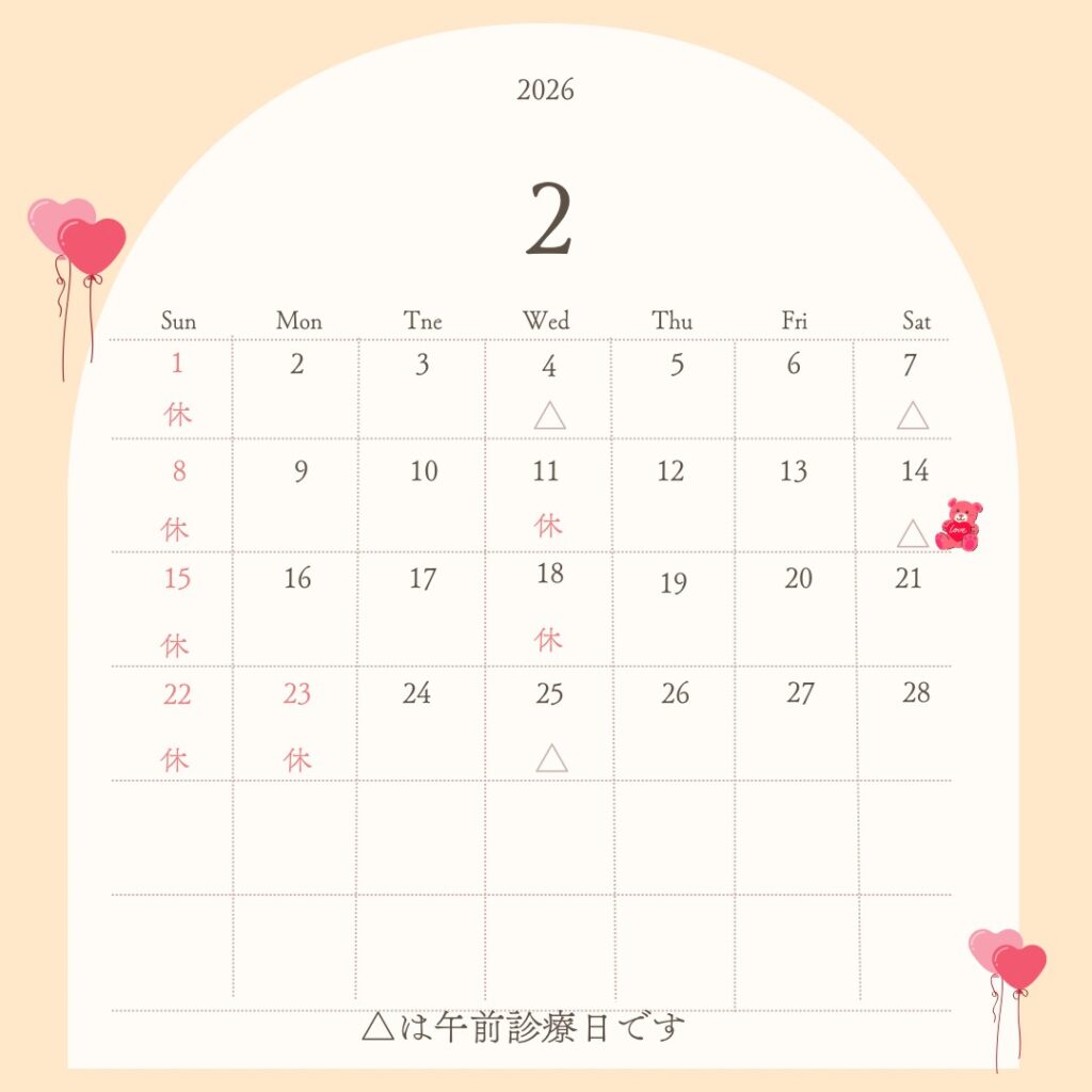 2月の診療日程を更新いたしました。受診のご予定にお役立てください。