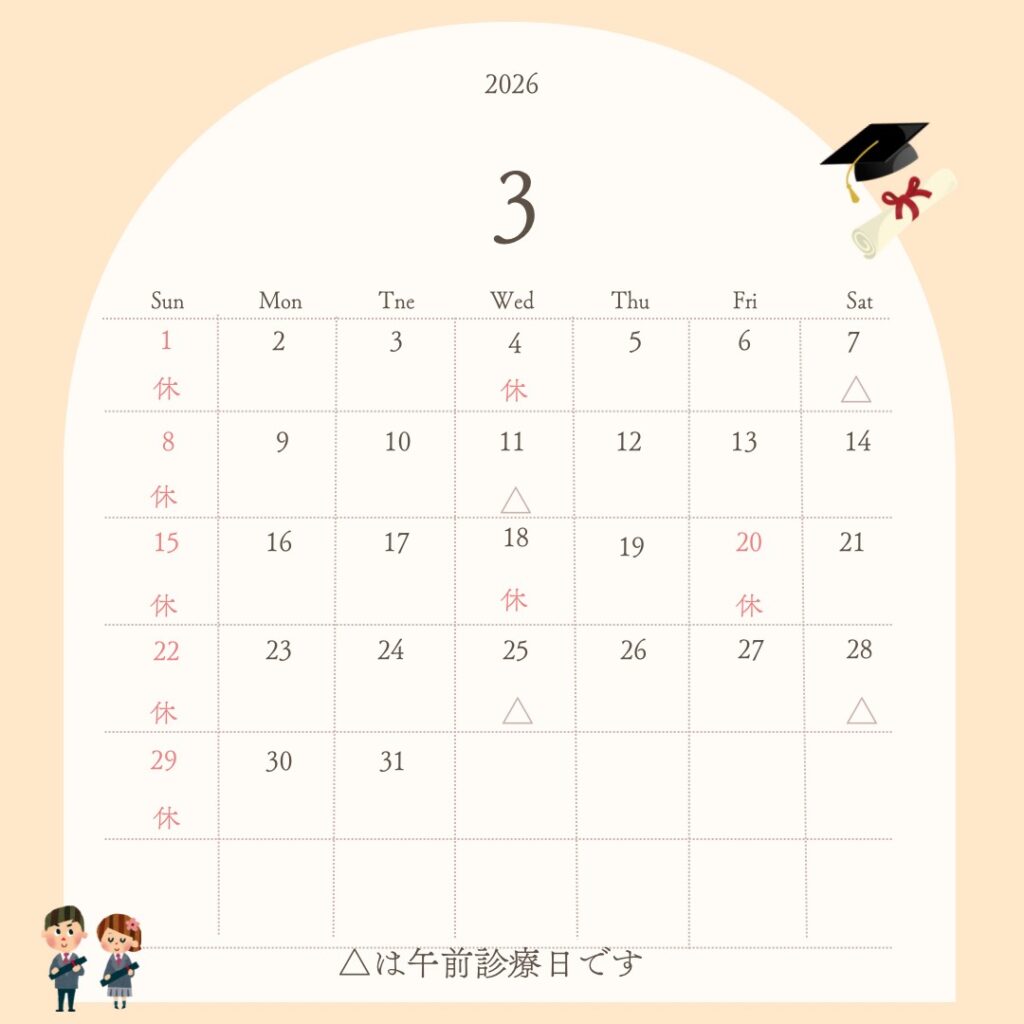 3月の診療日程を更新いたしました。受診のご予定にお役立てください。