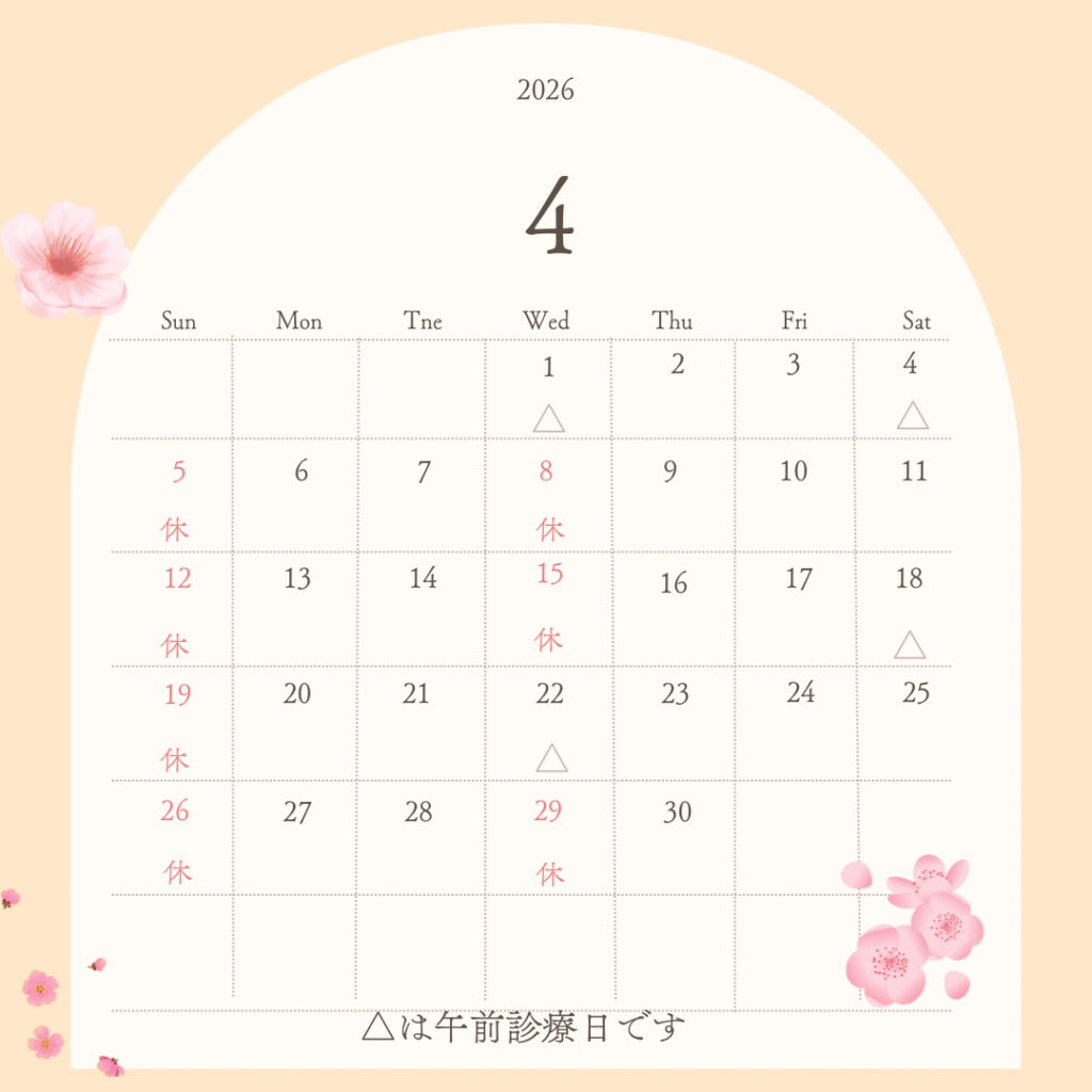 4月の診療日程を更新いたしました。受診のご予定にお役立てください。