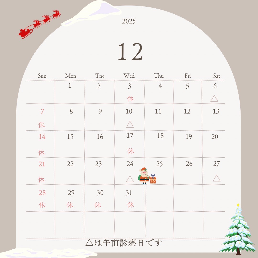 12月の診療日程を更新いたしました。受診のご予定にお役立てください。